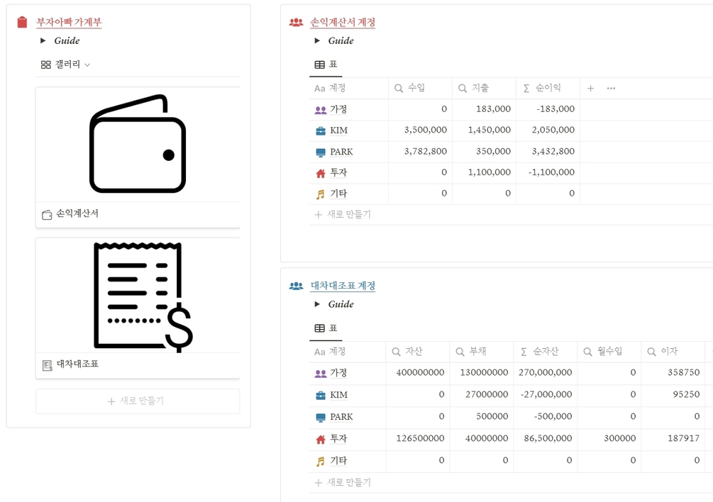 📝수입과 지출, 자산과 부채를 손쉽게 관리할 수 있는 통합 가계부에요.